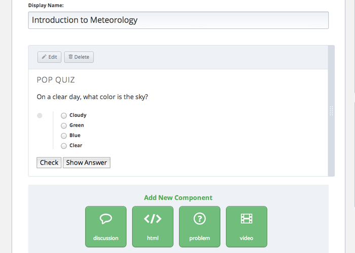 Studio使您可以将您的课程内容以有助于巩固学习效果的形式组织在一起。您只需通过几次点击就可以插入视频、讨论区以及各种各样的练习题。